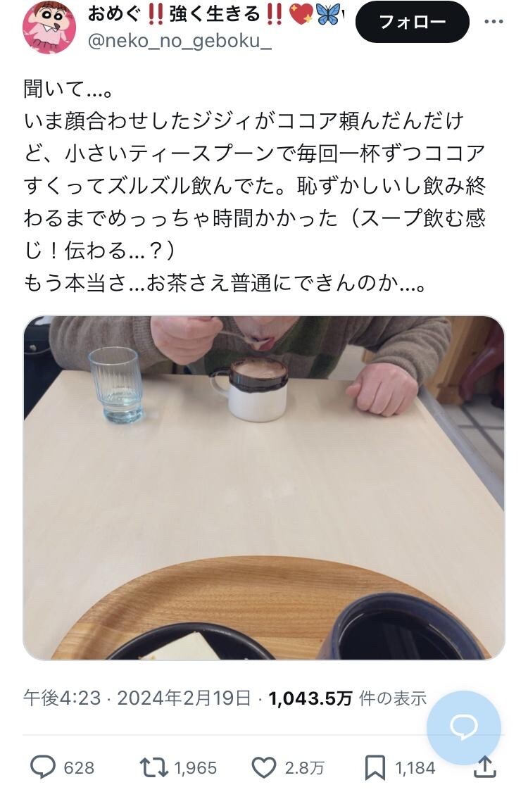 ココア飲むのに合わせてスマホ構えて写真撮ってる姿想像すると笑える