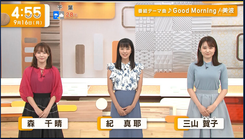 三山 賀子(みやま よしこ)テレビ朝日のアナウンサー。東京都出身。 慶應義塾大学卒業。身長165cm。