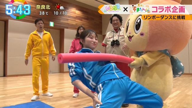 【画像】佐藤佳奈アナのモリマンがリンボーダンスで浮き上がってしまう