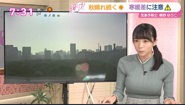 【画像】気象予報士の椿野ゆうこさん、爆乳で完全にシコらせにくる